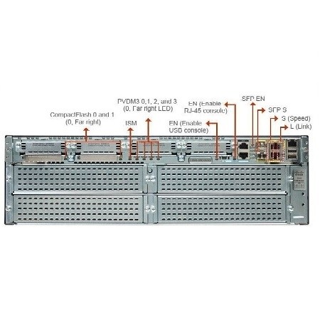 رابط شبکه : Port GigabitEthernet*3 - کارتهای توسعه : 4* Slot HWIC + 4 DSP + 2 SM - حافظه فلش : 256 مگابایت - حافظه DRAM : یک گیگابایت